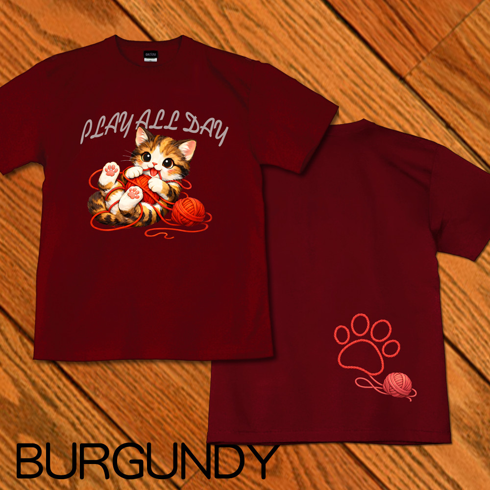 GENJU 可愛い猫 Cat キャット にくきゅう 毛糸 キュート 茶トラ メンズ レディース Tシャツ 半袖 長袖 PLAY ALL DAY 大きめサイズあり XXL XXXL 2L 3L 4L