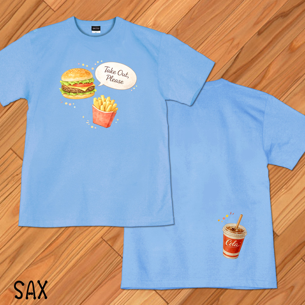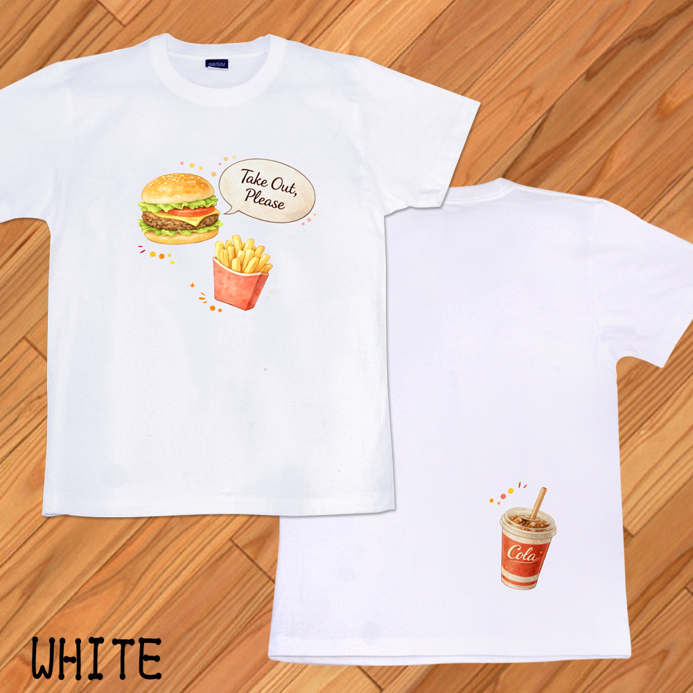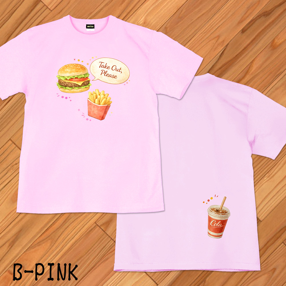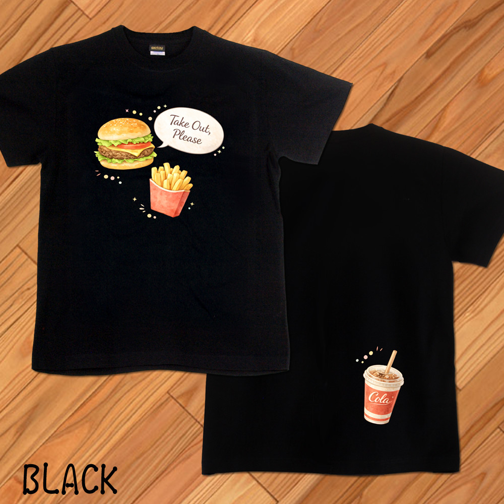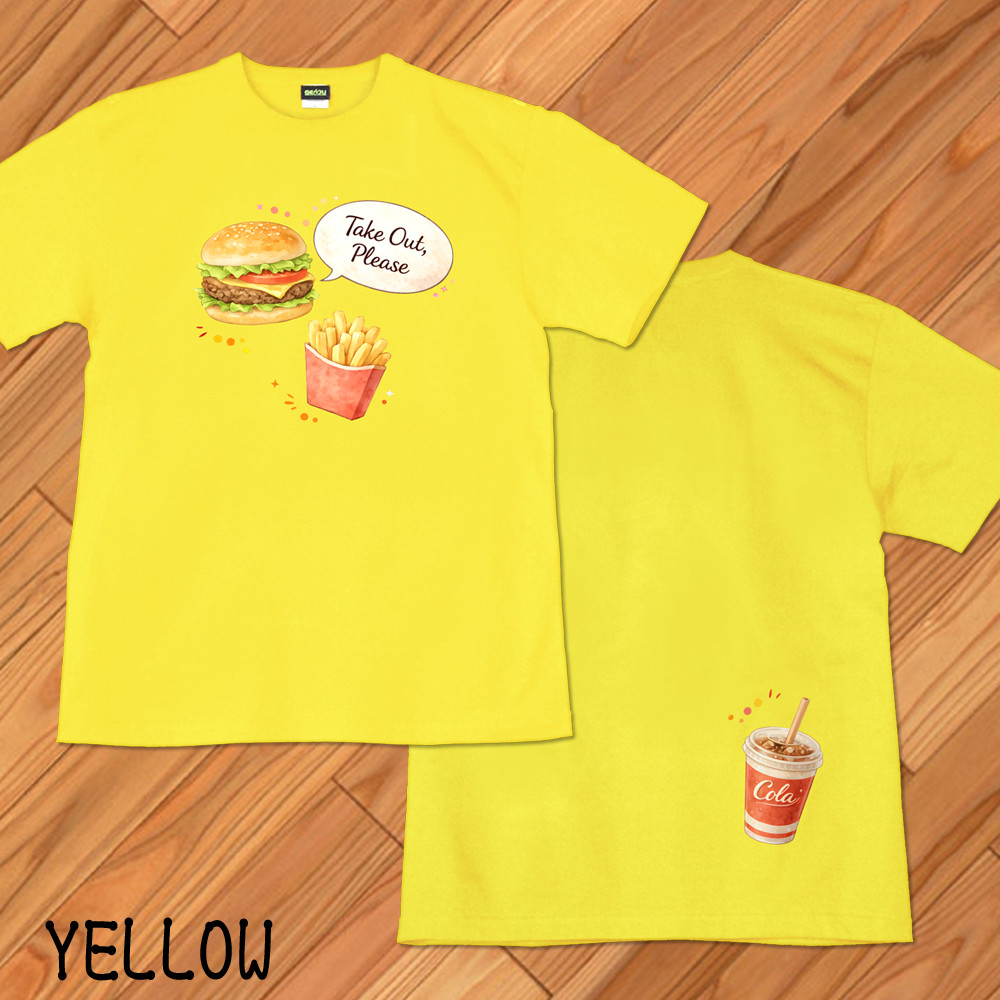 GENJU ハンバーガー ファーストフード フライドポテト メンズ レディース Tシャツ 半袖 長袖 takeout please2 大きめサイズあり XXL XXXL 2L 3L 4L